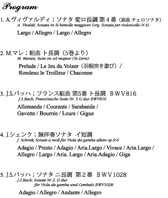 ヴィオラ・ダ・ガンバソナタ全3曲他〉〈マラン・マレの横顔3〉をリリース。現在、京都市立芸術大学非常勤講師。