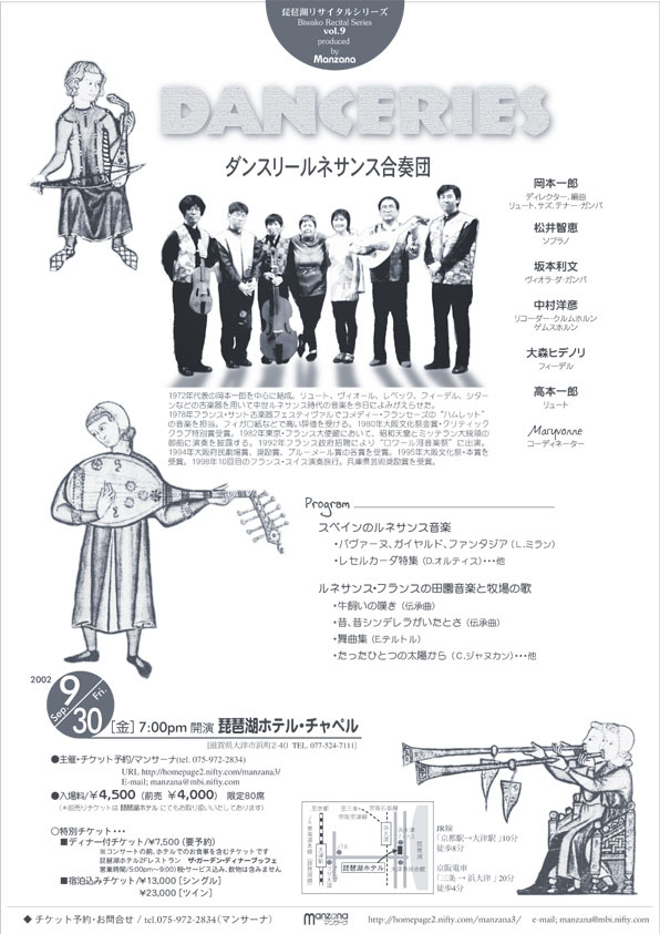 Danceries I.Okamoto (Lute) T.Matsui (Soprano) T.Sakamoto (Viole) H.Nakamoura (Recorder) H.Omori (Fiedel) I.Takamoto (Lute) & Maryvonne (coordinater) Sep.-30, 2002