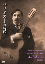 パラグアイのアグスチン・バリオス(1885-1944)は卓越したギター奏者であったばかりでなく、ギターの為の数々の名曲を残した作曲家でもありました。私はこれまでもバリオスの作品は演奏してきましたが、今回はその中でも代表的な作品と、バリオスの時代に前後する二人の作曲家、F.タレガ(スペイン)とD.レイス(ブラジル)の作品を取り上げてみたいと思います。 (藤井眞吾/08/03/16)