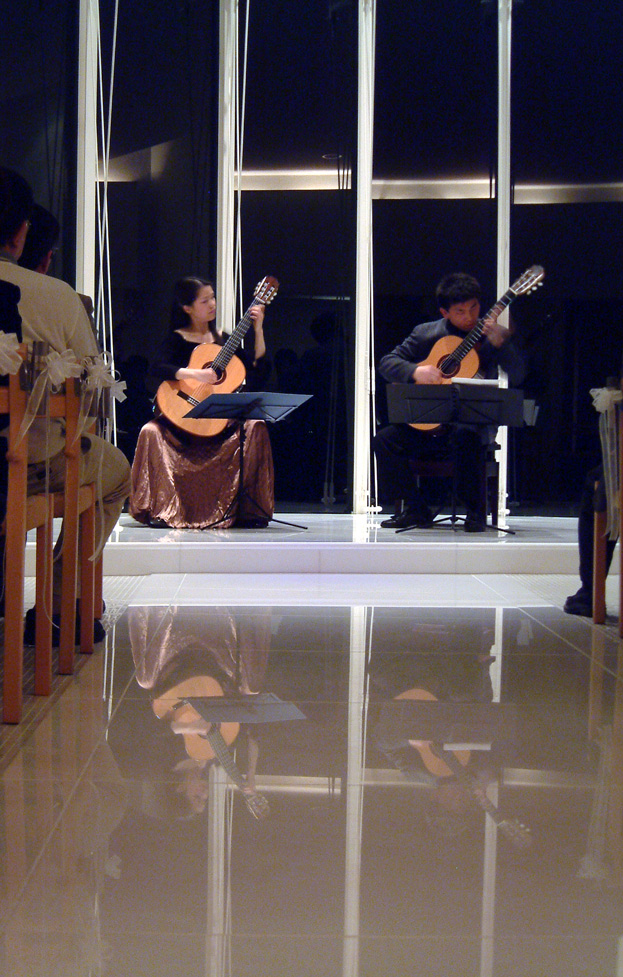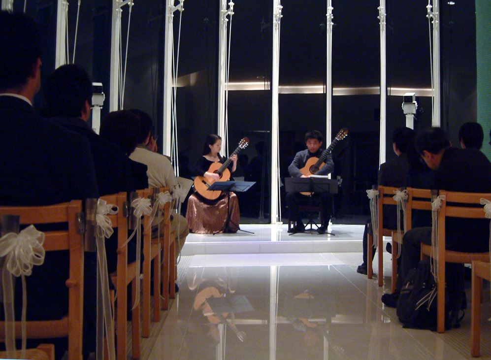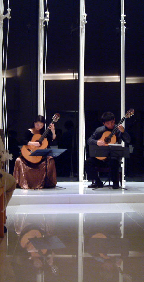・・・ぴったりと息の合ったギターの二重奏はまさに「兄妹」ならではの完璧なものでした。ピアソラの難曲を始めたしたレパートリーも鮮やかなテクニックで、聴衆からは曲が終るごとにため息が漏れ聞こえていました。