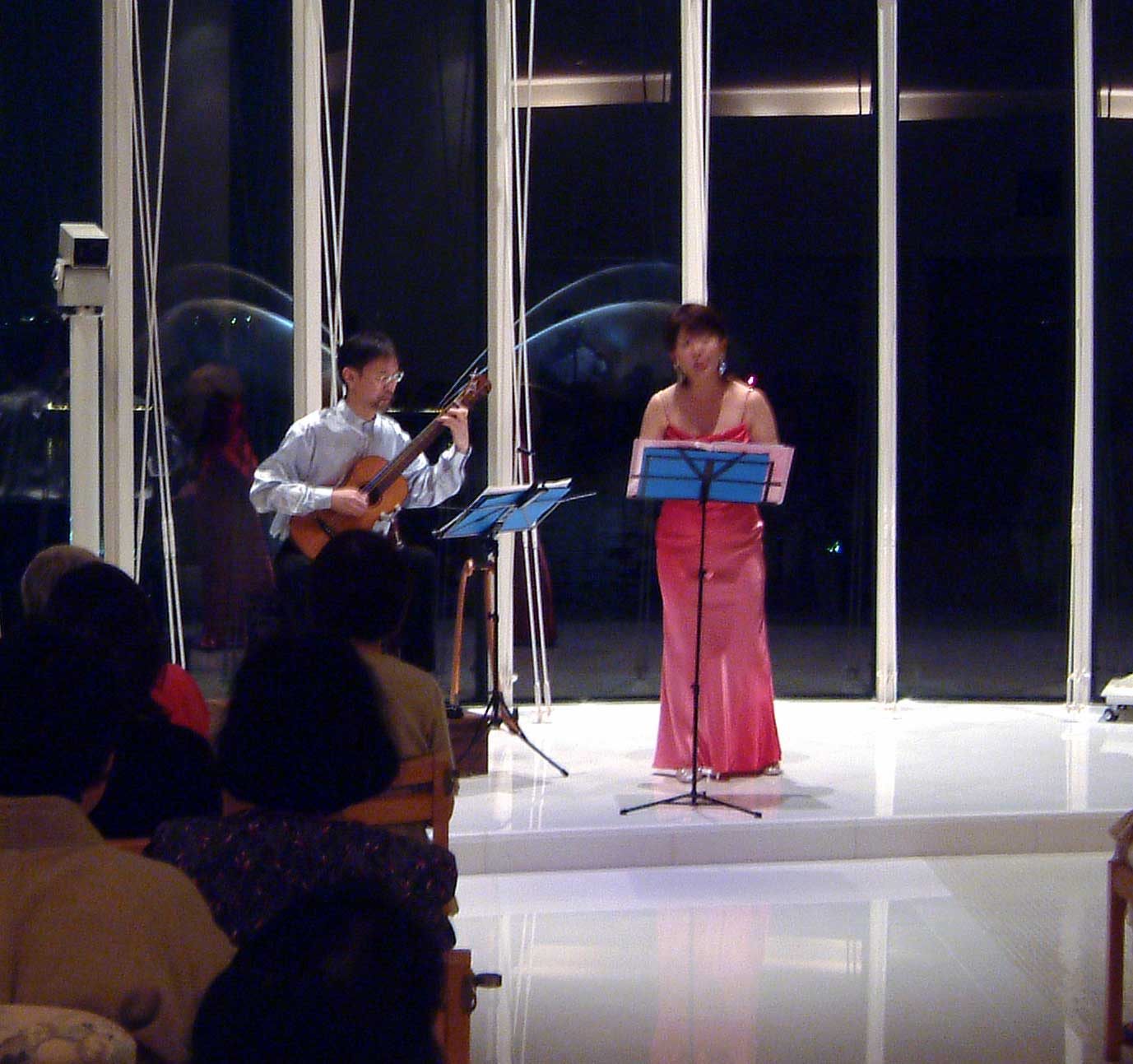 私は、昨年初夏の琵琶湖ホテル・チャペルでのコンサートの時、聴衆として客席 に座っていました。演奏はとても素晴らしく感動しましたが、それ以上に背景の